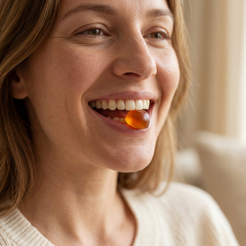 Each bottle contains 60 gummies — a 30-day supply. Enjoy two gummies per day as your simple daily gut–skin ritual.