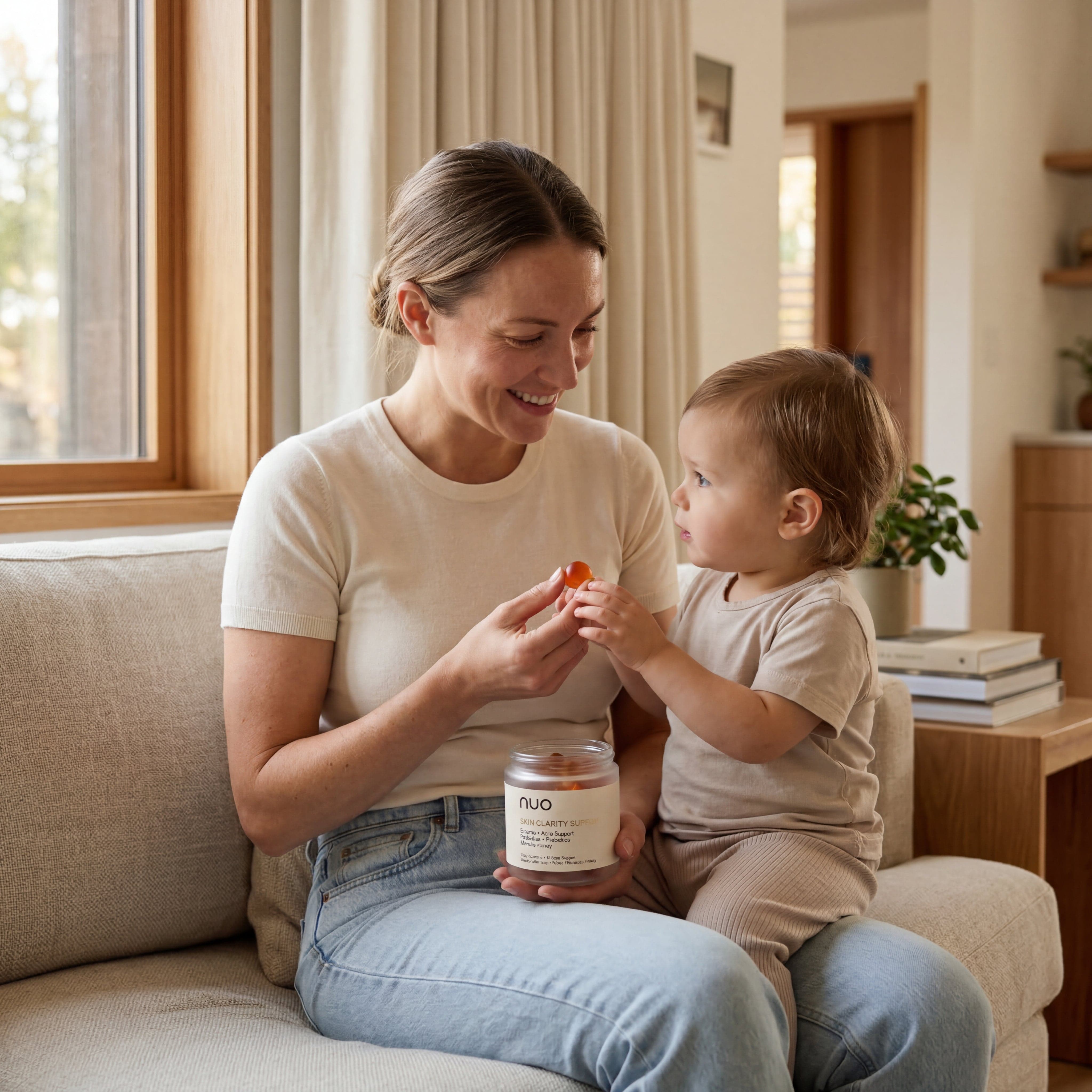 Nuo gummies work from within by supporting a balanced gut microbiome. Our micro-encapsulated probiotics, gentle prebiotics, and New Zealand Manuka honey help nourish digestion, support the gut–skin axis, and promote calmer, healthier-looking skin over time.